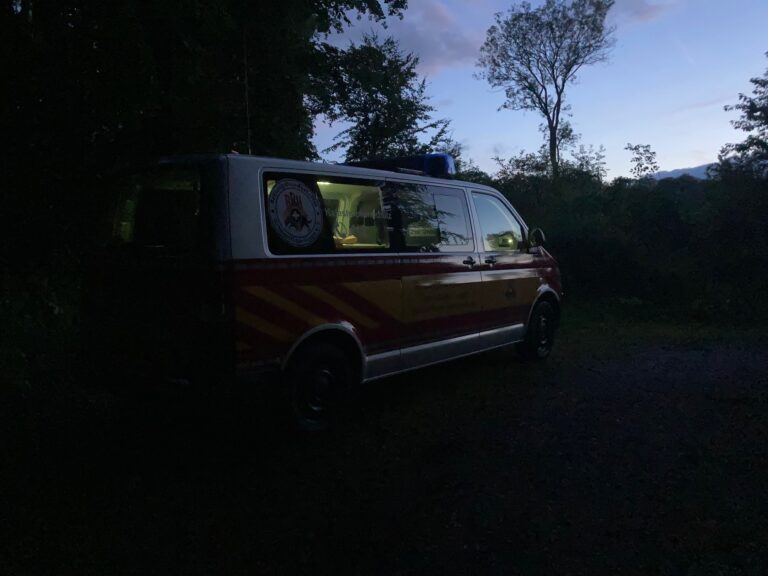 Am 30.09.2025 wurde unsere Rettungshundestaffel, in den späten Abendstunden, nach Willebadessen zur Flächensuche alarmiert. Dort wurde seit mehreren Tagen eine ältere Frau vermisst. Ihr Fahrzeug wurde durch Kräfte der Polizei auf einem abgelegenen Parkplatz aufgefunden. Es galt nun die südlich angrenzenden Waldgebiete nach der vermissten Person abzusuchen. Unsere Rettungshundestaffel war mit 10 Einsatzkräften und 5 Rettungshunden im Einsatz. Auch Einheiten einer Einsatzhundertschaft sowie ein Polizeihubschrauber waren an der Suche beteiligt.